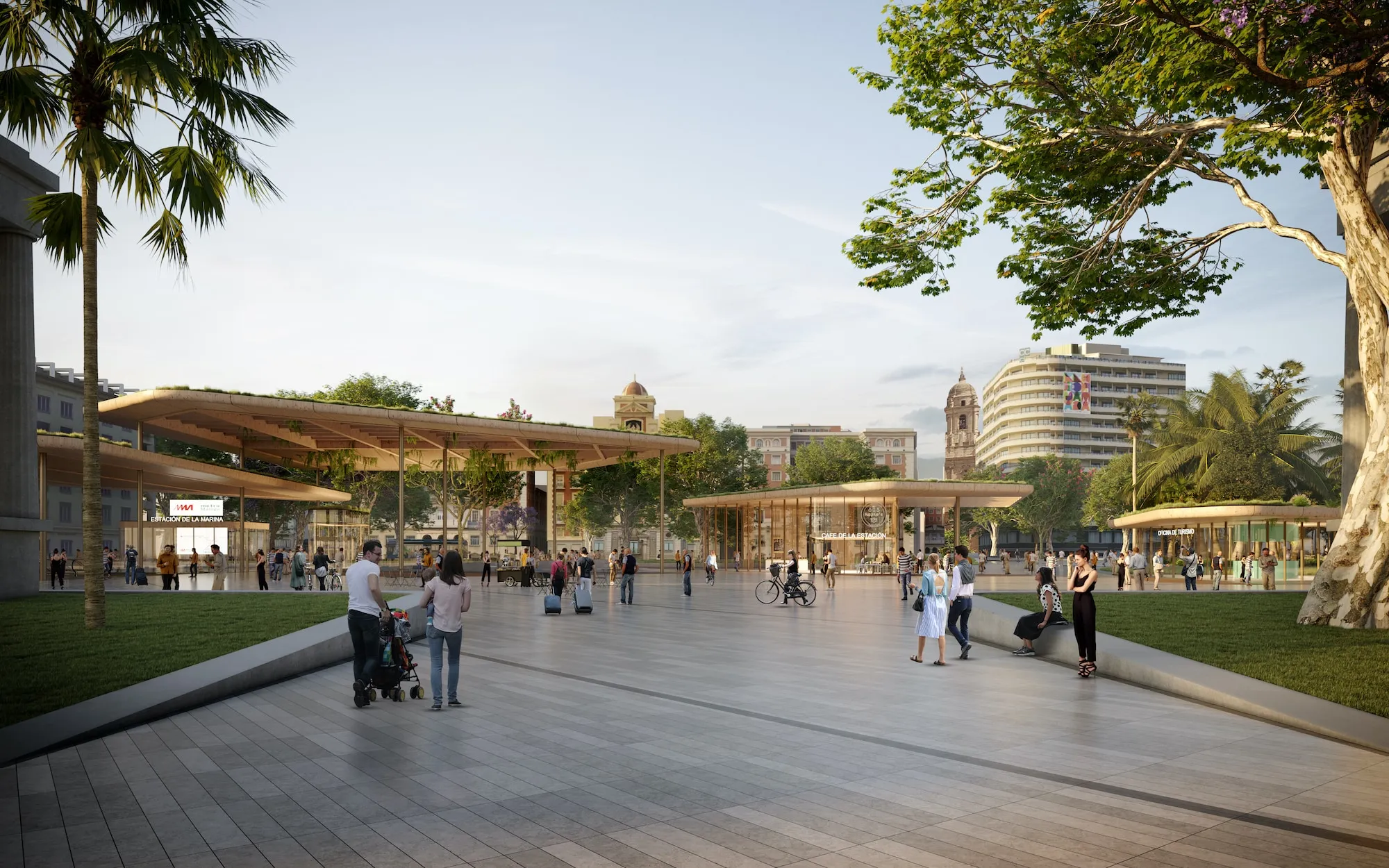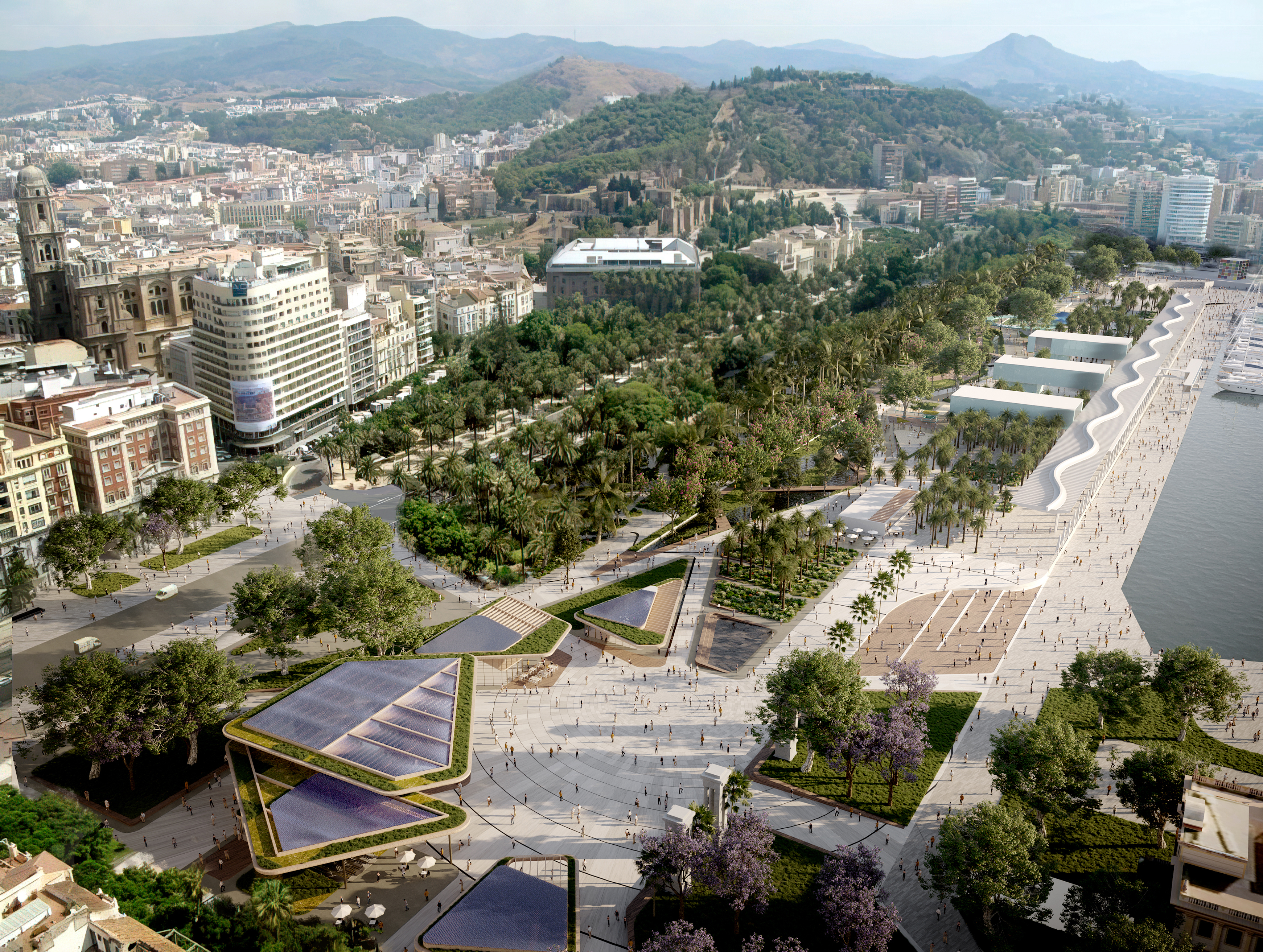 La nueva Plaza de la Marina será un espacio de gran representatividad urbana que actuará, además, como un importante nodo intermodal para la ciudad. Equipada por multitud de programas diversos, y ofreciendo un espacio público de calidad que favorezca el confort de los ciudadanos, se convertirá en la pieza angular de la interrelación entre ciudad, naturaleza y puerto. La relocalización de la Plaza de la Marina reconoce además la confluencia de los principales ejes peatonales y visuales hacia la calle Larios, la Catedral, el muelle Heredia y el Palmeral.