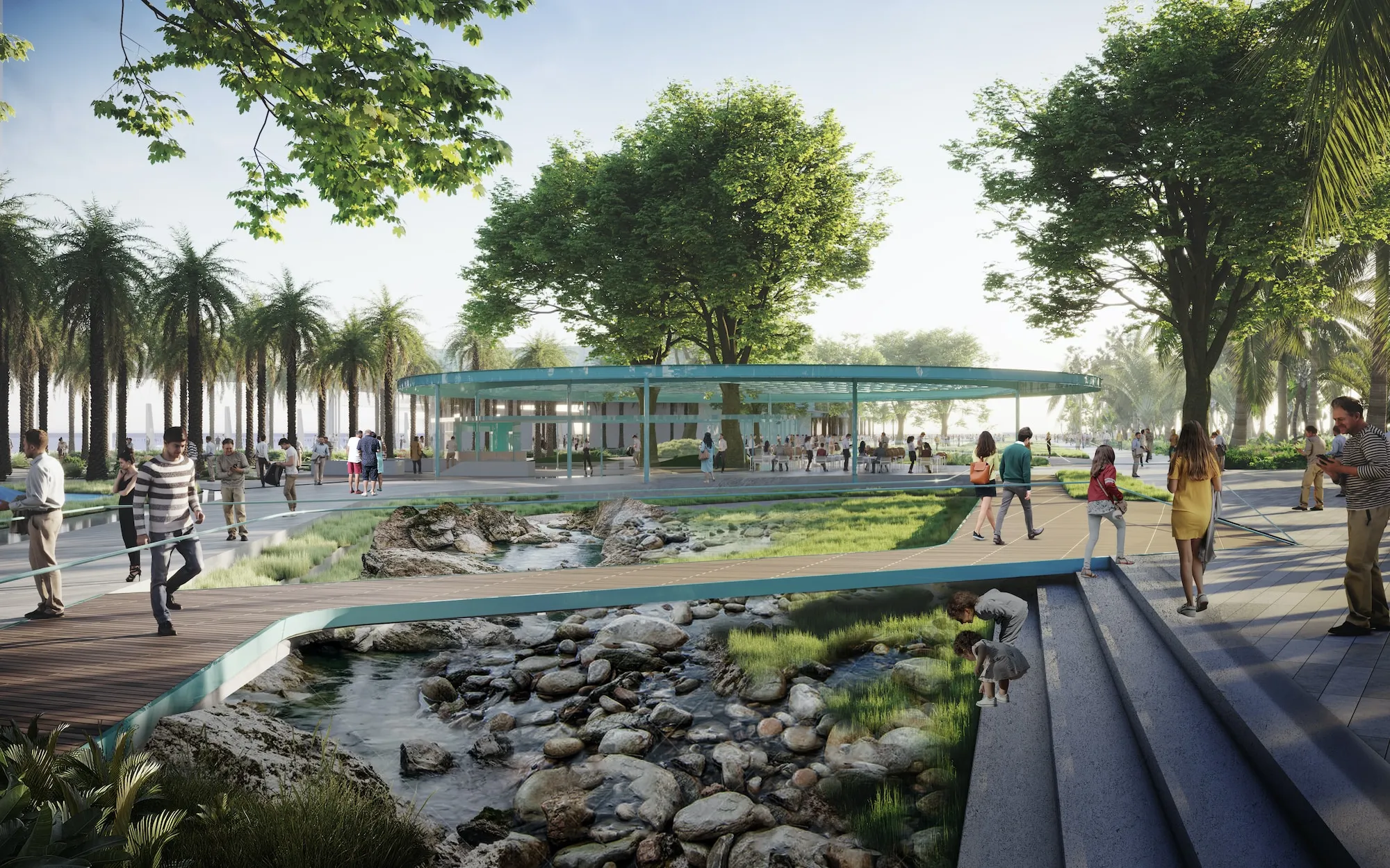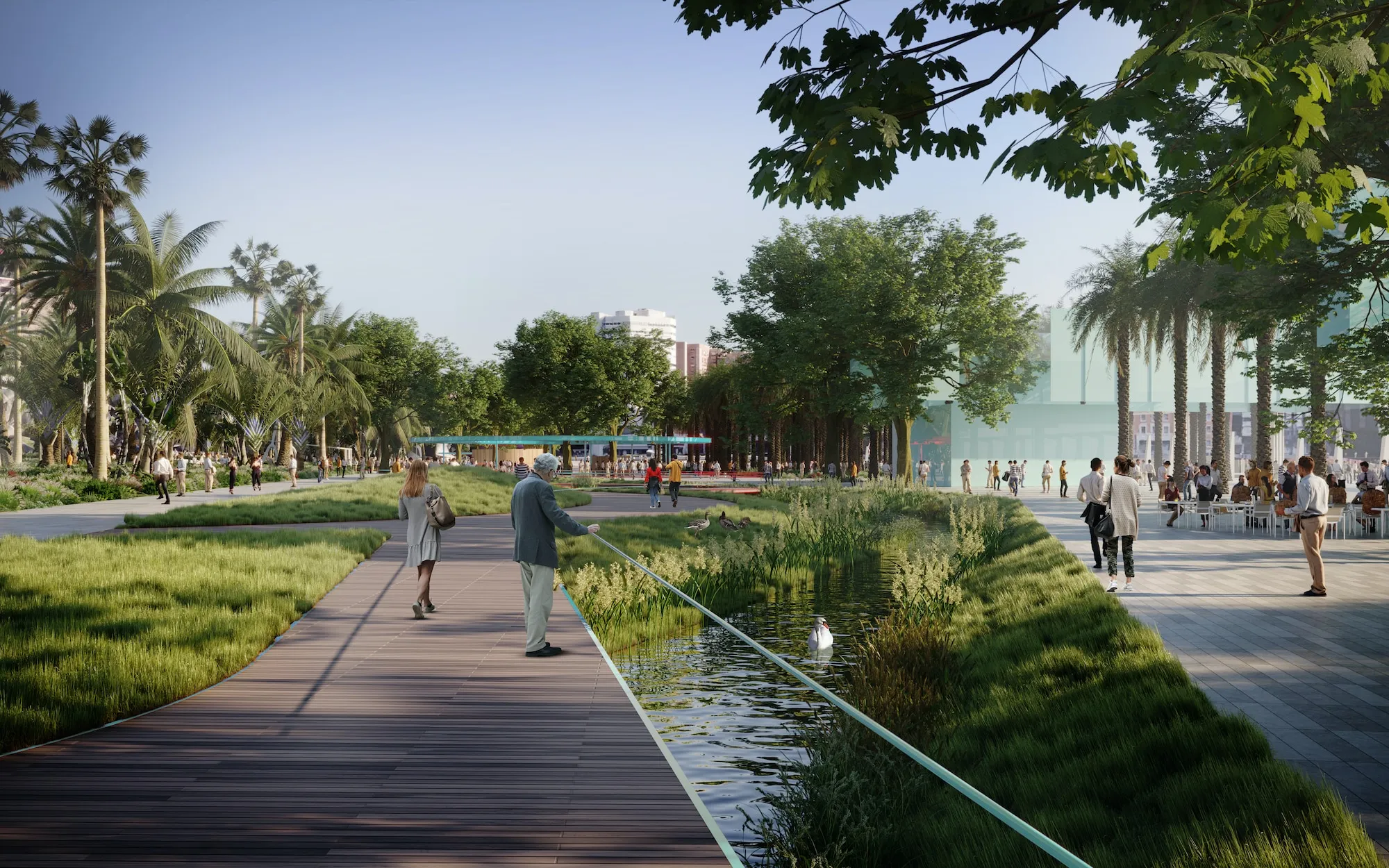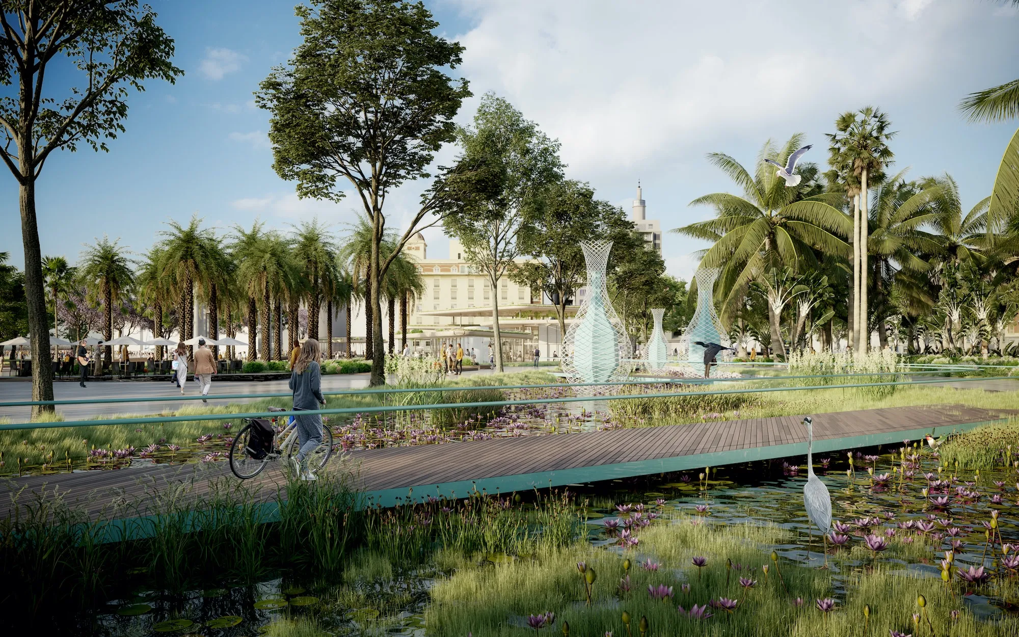 La propuesta propone estrategias innovadoras de gestión del agua, preparando esta zona de la ciudad ante futuras situaciones de emergencia climática. Una gestión responsable de un recurso que cada vez se hace más escaso, pero que al mismo tiempo se presenta con frecuencia en forma de lluvias torrenciales que colapsan la ciudad. Con esta intervención aspiramos además a un concepto de sostenibilidad más educativa, concienciando a la sociedad a través de la visibilización de los procesos ecológicos que tienen lugar en el parque.